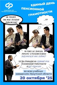 20 октября 2025 года Отделение Фонда пенсионного и социального страхования Российской Федерации по Иркутской области проводит «Единый день пенсионной грамотности». для учащихся школ подготовлена видеолекция.