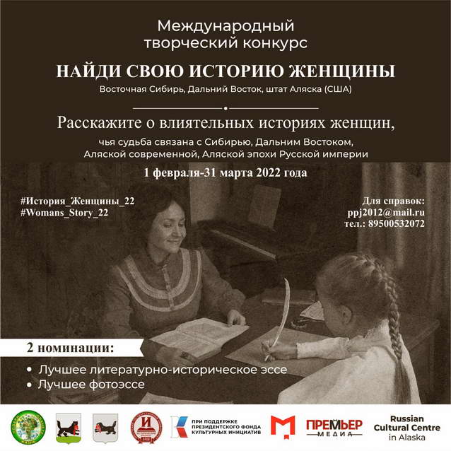 Творческий конкурс «Найди свою историю женщины» проводит благотворительный фонд «Подари Планете Жизнь» совместно с Русским культурным центром на Аляске (г. Анкоридж), а также Историческим факультетом ФГБОУ ВО «Иркутский государственный университет».