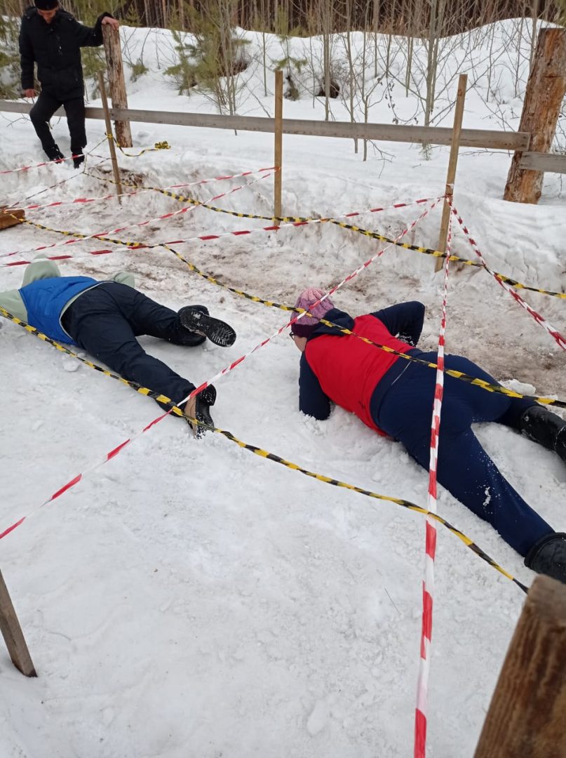 Этап «Сапёры» (судья И. М.Житов): это одно из самых сложных заданий. В снегу закопано десять мин и команде необходимо за три минуты при помощи щупов («миноискателей») найти, разминировать как можно больше их. Самыми результативными были «сапёры» из Управления образования.