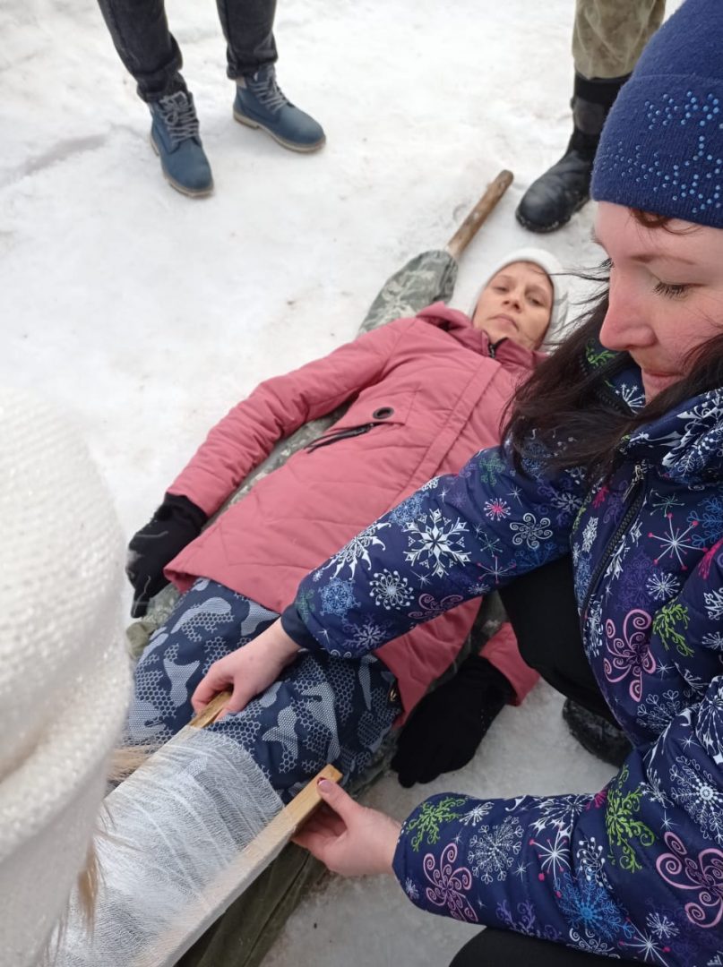 Этап «Санитары» (судья О. А. Роднаева): здесь участники отвечали на вопросы доврачебной медицинской помощи, изготавливали носилки из подручных средств, накладывали повязки и транспортировали «раненого». Самой лучшей оказалась в этом конкурсе команда «Вездеходы» СОШ № 1 г. Киренска.