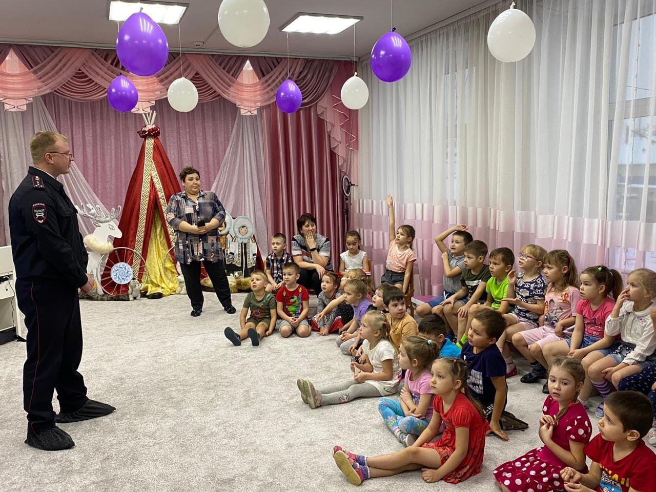 Детский сад №1 г. Киренска стал следующим образовательным учреждением, которое посетили сотрудники Управления Госавтоинспекции Иркутской области и провели с детьми профилактические беседы по безопасности дорожного движения.