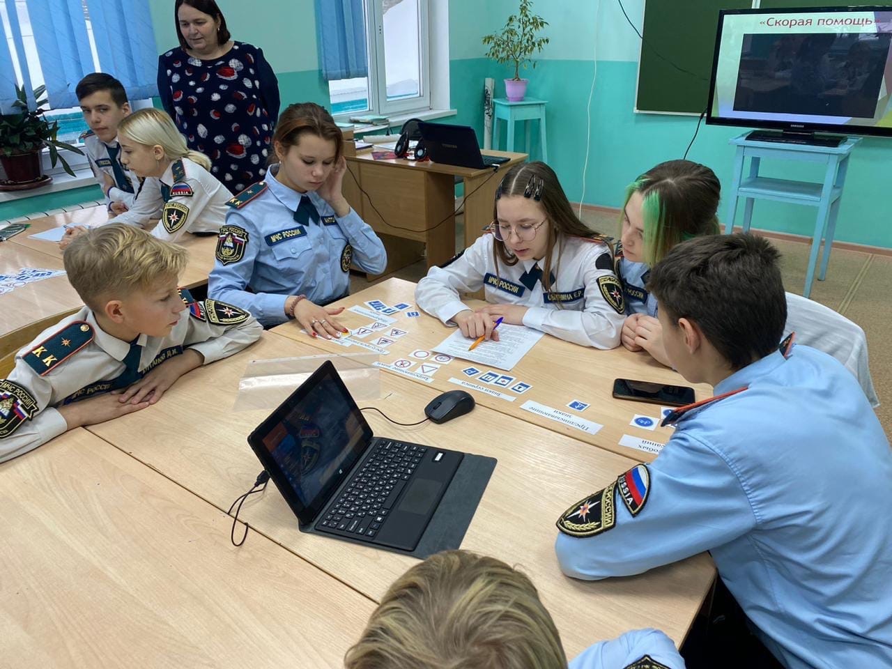 В ходе открытого урока ребятам было предложено показать свои знания, решая тесты и задачи по правилам дорожного движения. В ходе занятия ученикам также были продемонстрированы видеоролики по безопасности дорожного движения и основам оказания первой доврачебной помощи.